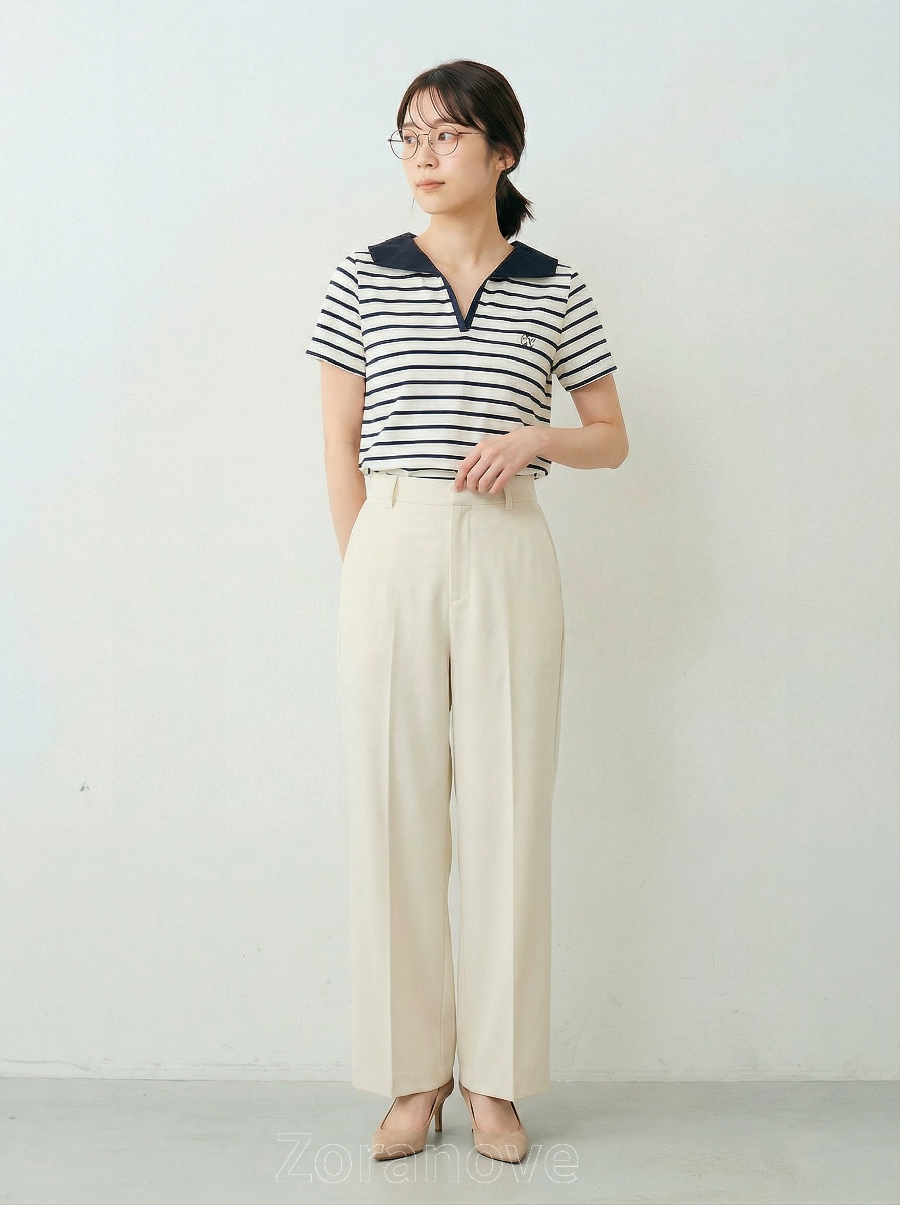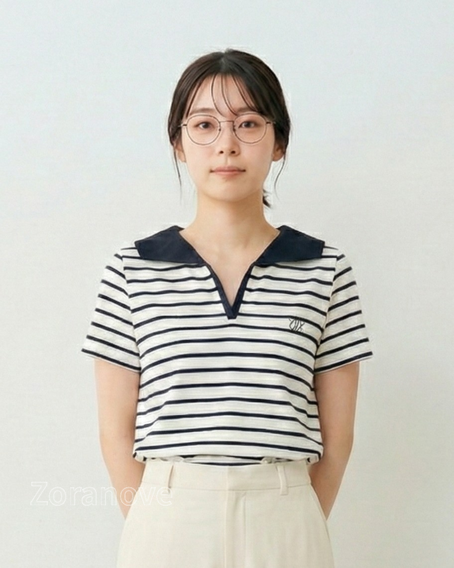 胸前以小面積刺繡點綴,低調不搶眼,適合通勤或週末出遊;搭配高腰西褲、半身裙或牛仔褲皆宜。