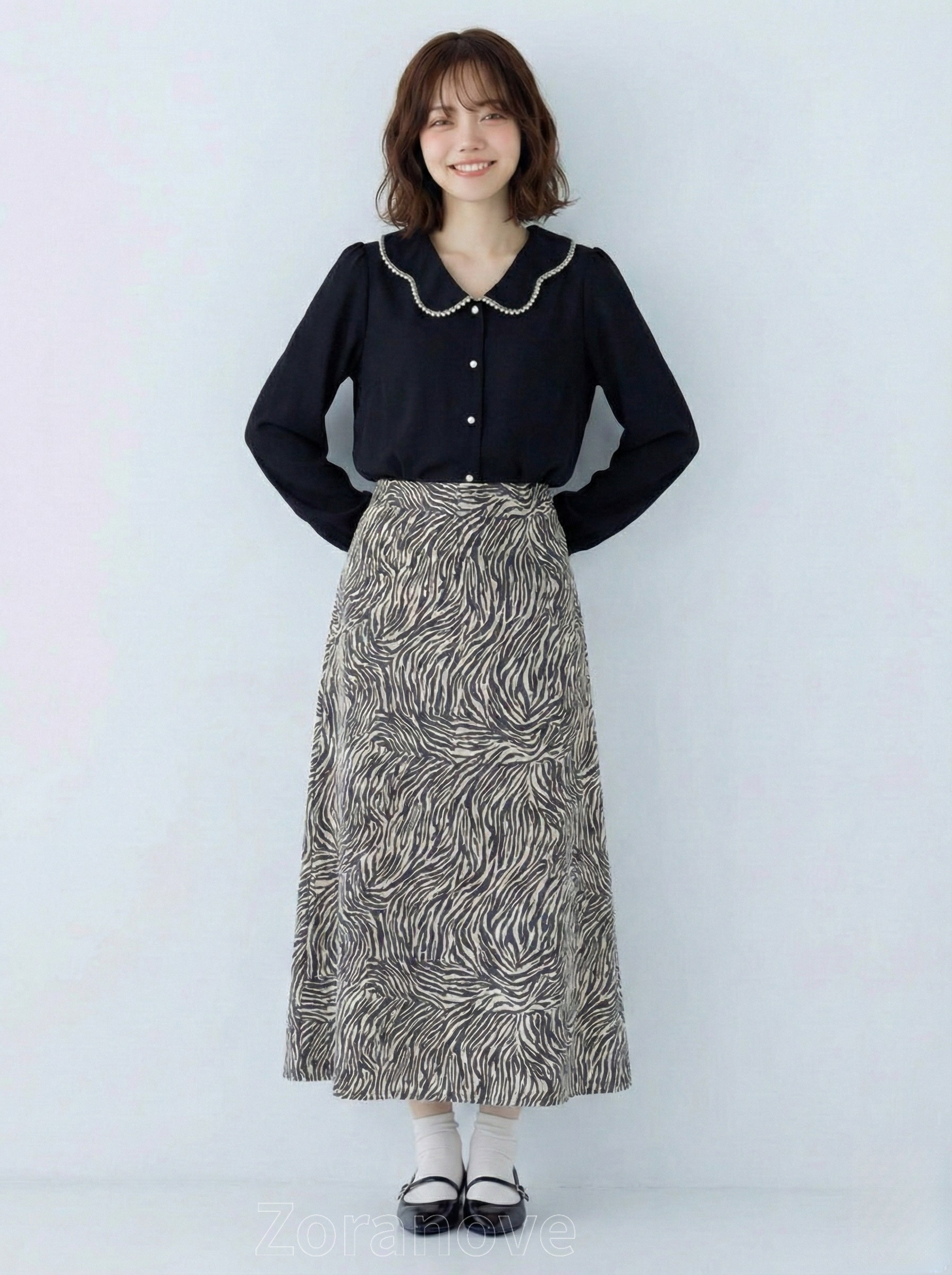 娃娃領外緣以珍珠鑲邊勾勒柔美弧線,自然聚焦臉部輪廓,單穿即顯精緻感。